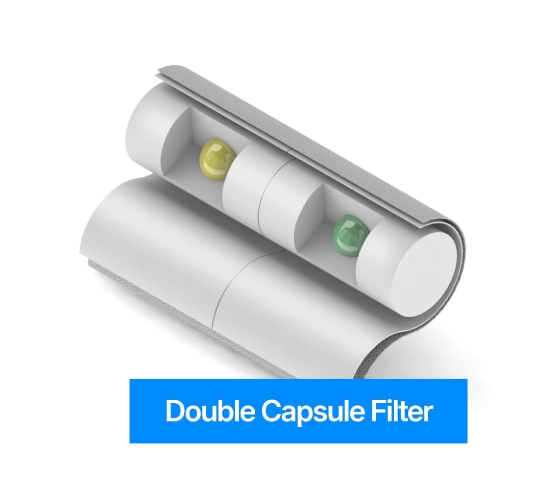 A Double Capsule Filter is a type of a cigarette filter that features a small capsule embedded within the filter.