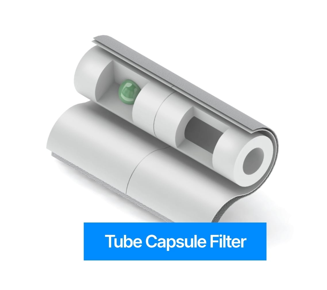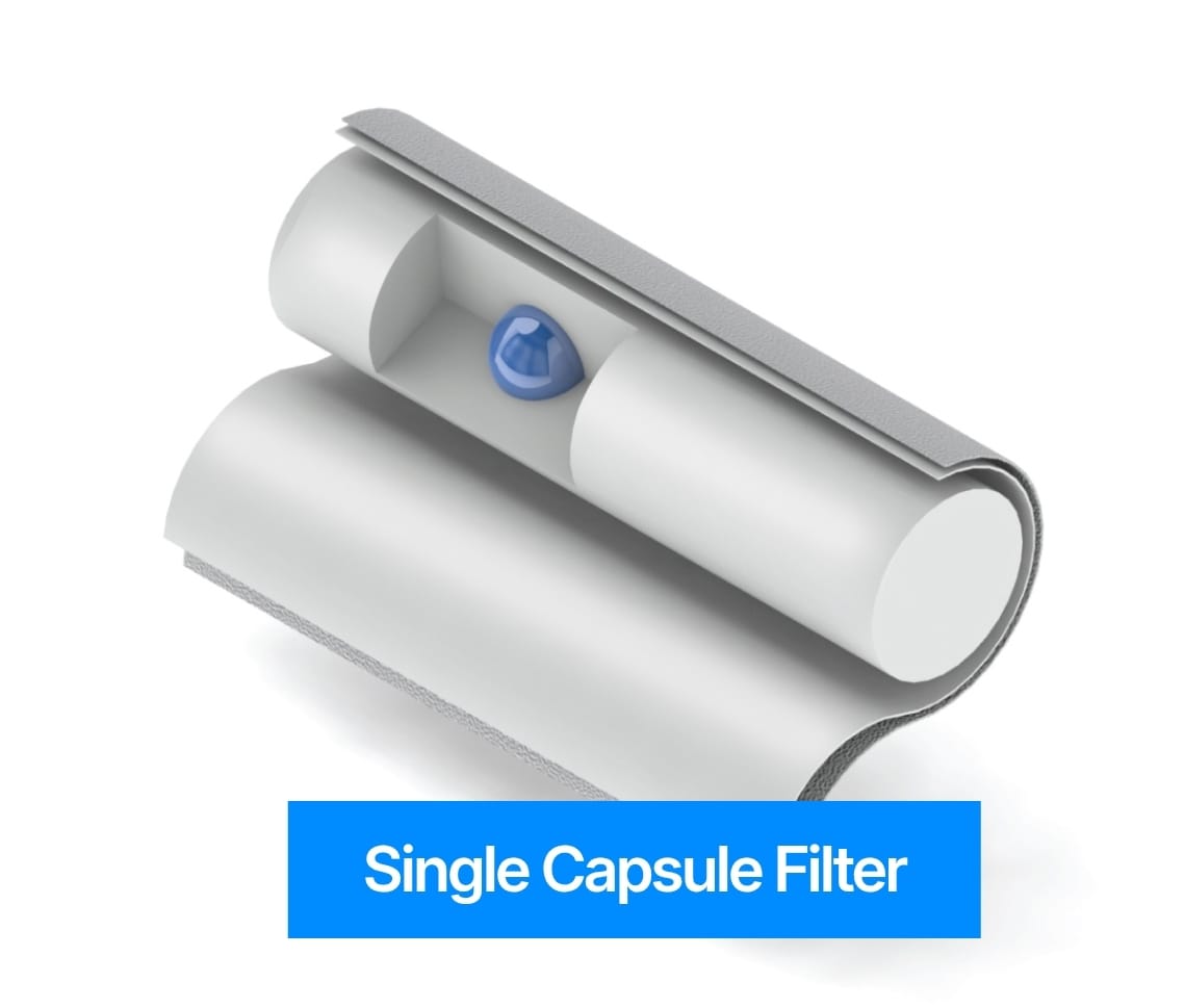The Dual Type Single Capsule Filter is similiar to the Mono Type Single Capsule Filter because both have one capsule inside.